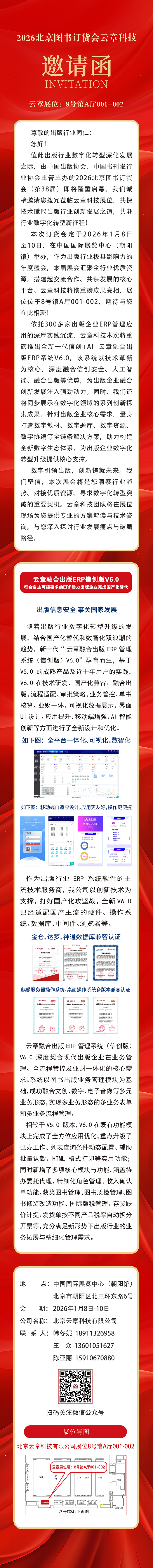 云章科技-出版行业信息化建设最好的合作伙伴-2026北京图书订货会云章科技邀请函